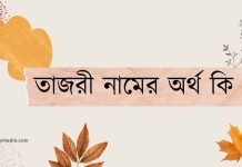 আপনি কি তাজরী নামের অর্থ কি কিংবা তাজরী নামের ইসলামিক অর্থ কি এর উত্তর খুঁজছেন, তাহলে ঠিক জায়গাতেই এসেছেন। তাজরী নামের অনেক মেয়েকেই নিজের...